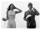 A2. "He likes his tea stirred anti-clockwise". Diana Rigg and Linda Thorson rehearse the conclusion of "The Forget-Me-Knot" in which Mrs. Peel departs the series and Tara King takes over as Steed's new partner. |