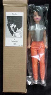 These were, apparently, made without copyright clearance in the early 70s, as part of a set along with dolls of Nurse Janice Rand from Star Trek, Agent 99 from Get Smart and Miss Moneypenny from the James Bond films. They were then advertised for sale in the back of a magazine, but the copyright cops caught up with the manufacturer who was forced to take them off the market. Those left unsold were donated to charity. According to the blurb on one up for sale on eBay recently, 'about 45 sets were kept and sold to one person'. This person has now sold them on. The copy on the front says "Tara Kins of The Avengers Fame". I'm not sure about this item - it seems too easy to fake something by photocopying a label and sticking it to the front of a box for a doll that could almost conceivably be Tara King. I also read that they had come from Japan. I suppose the capper would be to find the original magazine advert. Any suggestions? |